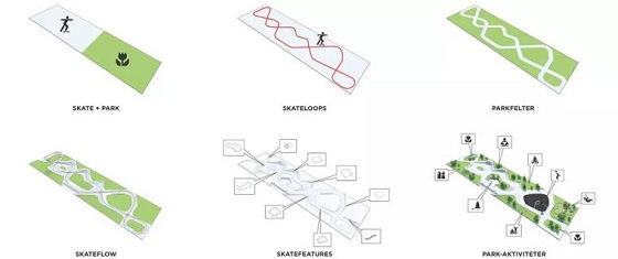 極限滑板主題公園的設(shè)計要讓人們在這座全新的滑板公園中享受滑板運(yùn)動的樂趣。公園建立與周圍環(huán)境的聯(lián)系的同時又保有良好的功能性。