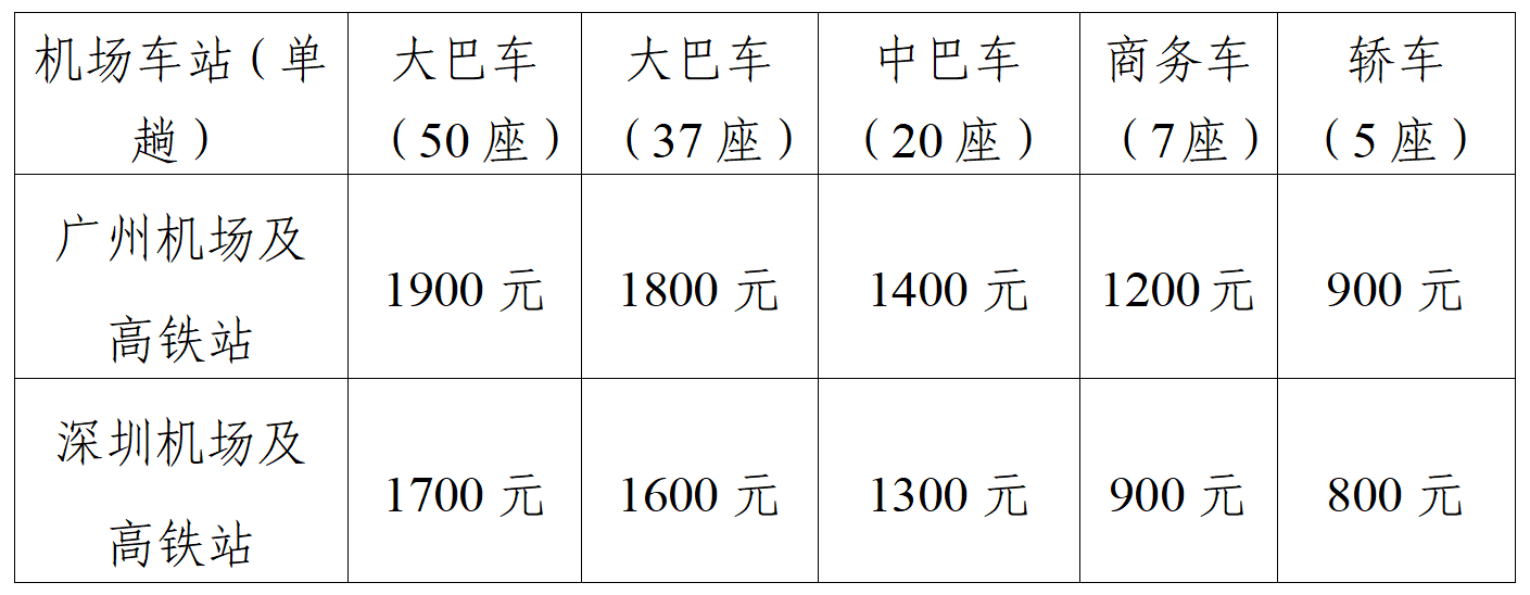 2.交通中轉(zhuǎn)保障。參賽單位原則上從始發(fā)地直達(dá)惠州賽區(qū),不在廣州、深圳賽區(qū)經(jīng)停和中轉(zhuǎn)。確需在廣州、深圳賽區(qū)轉(zhuǎn)換交通工具前往惠州賽區(qū)的,可在抵惠前10天與滑板競委會工作人員聯(lián)系,提供迎送站信息。費用標(biāo)準(zhǔn)如下: